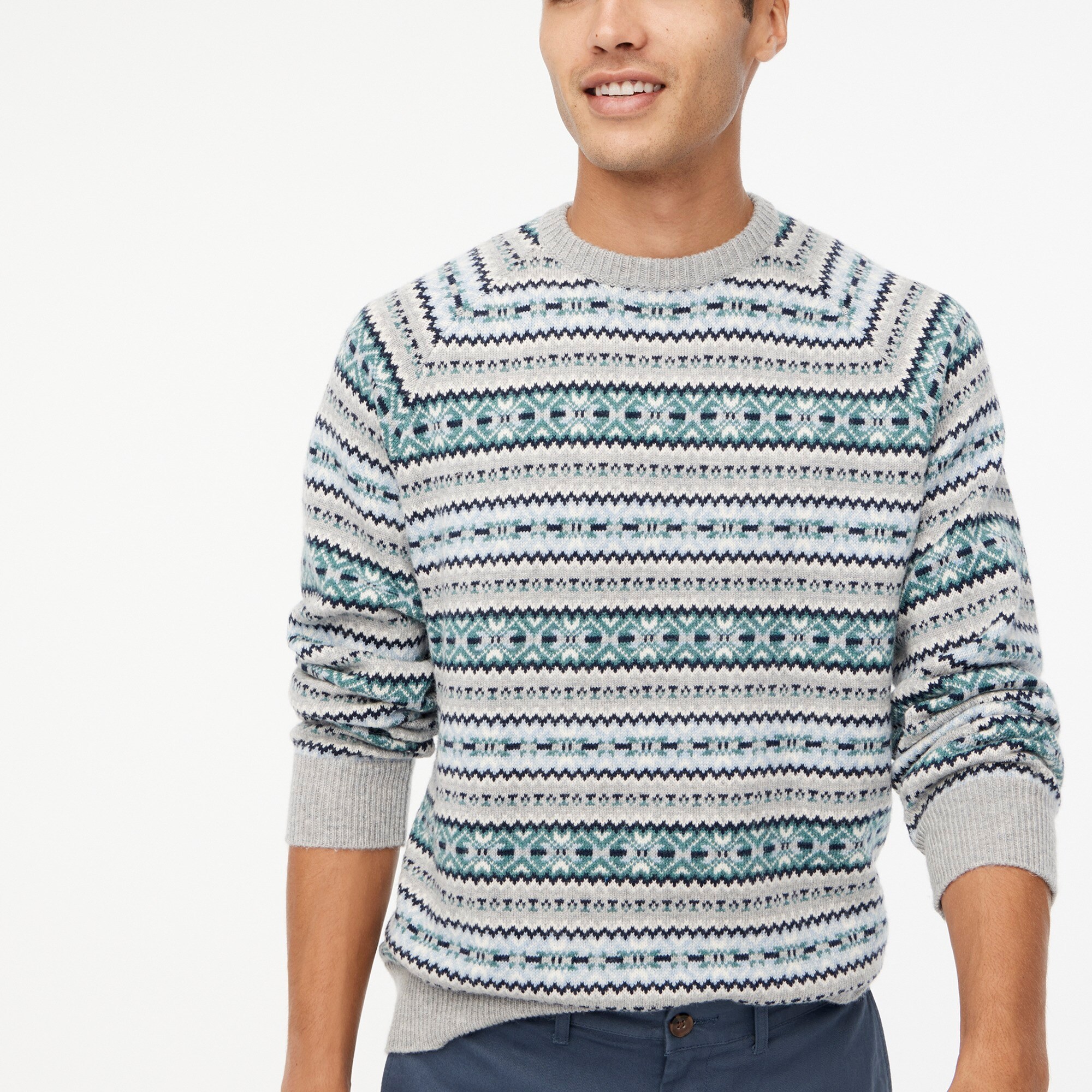 J Crew Mercantile Men S Fair Isle Lambswool Nylon Crewneck Sweater Heather Grey Xxl Amazon In Clothing Accessories
